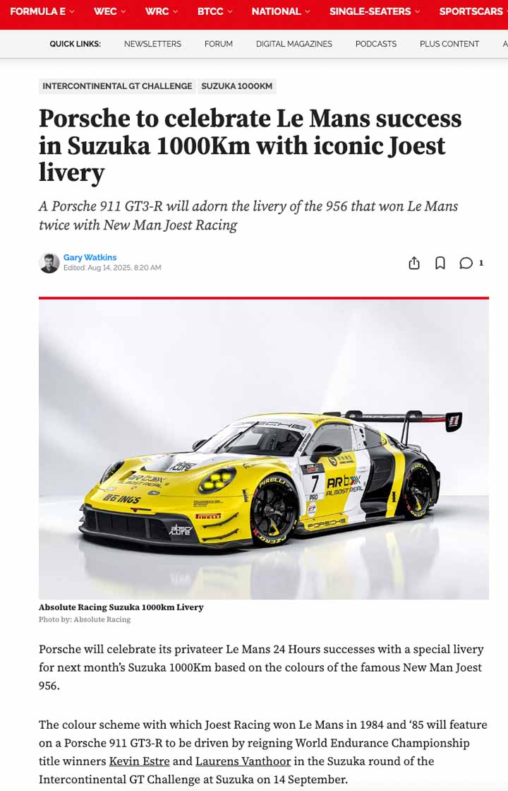 Pole wrote and distributed the announcements, while liaising with key motorsport media, including Autosport, to place the announcements on their websites.